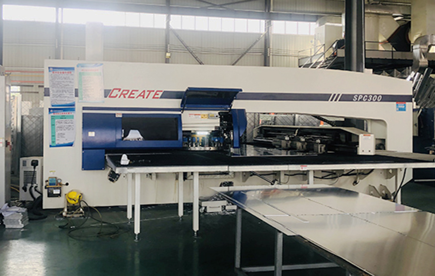 擁有現(xiàn)代化的生產(chǎn)廠房,配套完善,多工位數(shù)控沖床、6臺(tái)轉(zhuǎn)塔沖、4臺(tái)全自動(dòng)激光雕刻機(jī),全長(zhǎng)480米的自動(dòng)靜電噴涂生產(chǎn)線1條